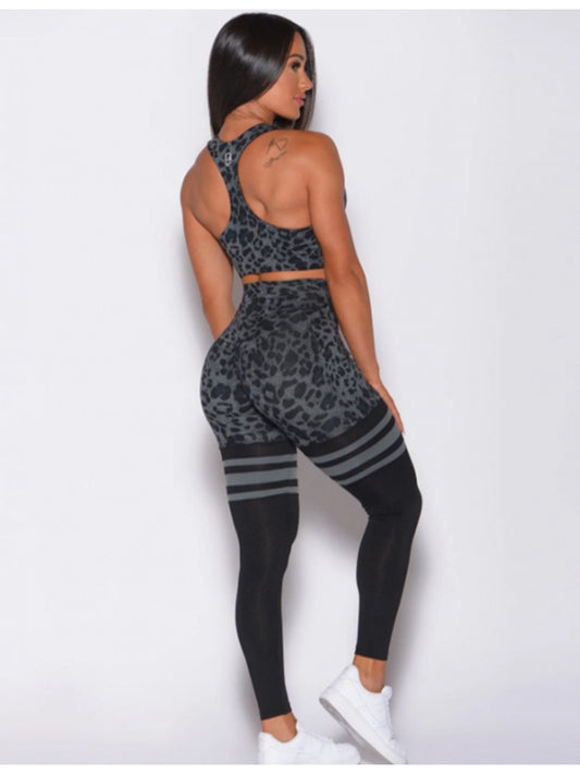 Leopard Colorblock Bodycon Yoga Set