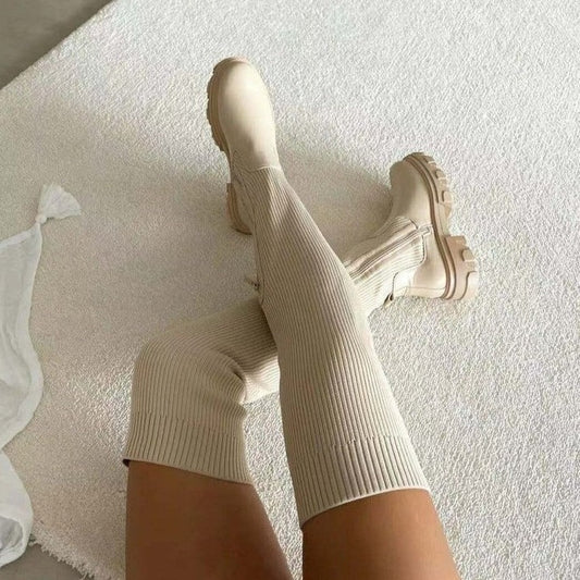 Modernist Rivets Ankle Strap Slim Heel Knee-High Boots