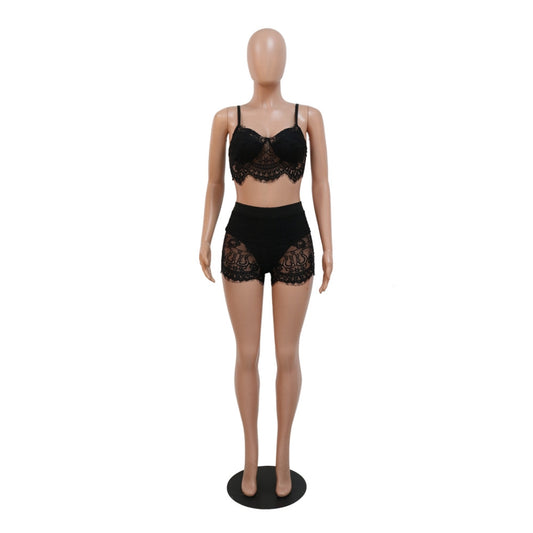 Sexy Backless Lace Detail Panel Lingerie Shorts Sets