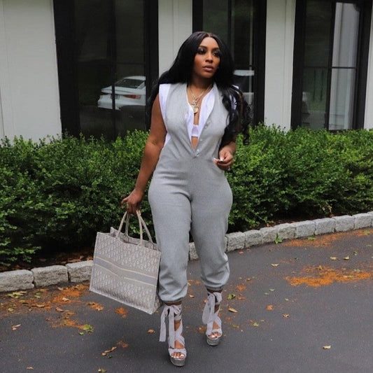 Solid Casual Patchwork Sleeveless Jumpsuit