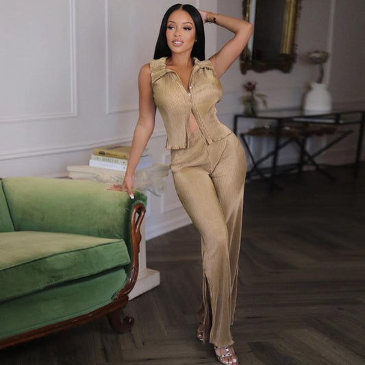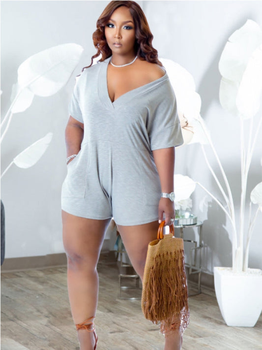 V Neck Button Sleeveless Wide Pockets Jumpsuit