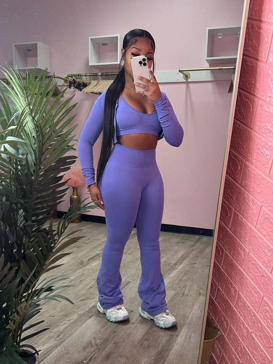 Zipper Cropped Flared Pant Tank 3 Piece Sets