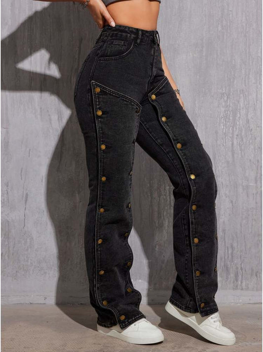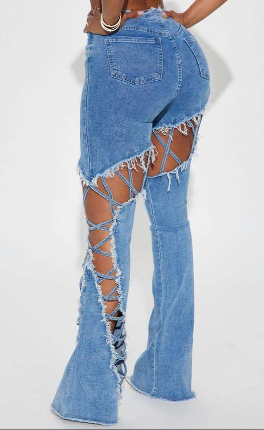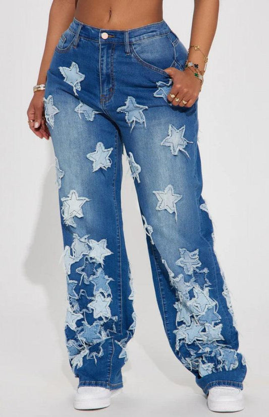 Star Applique Distressed Wide Leg Plus Size Jeans