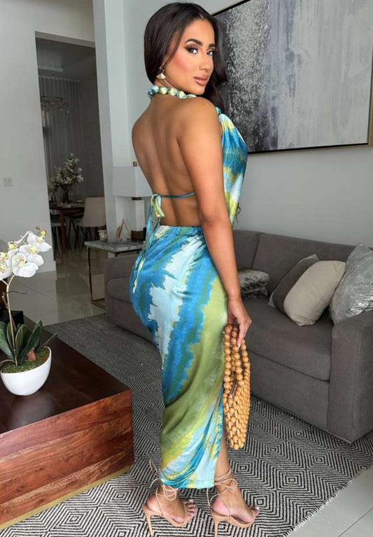Sexy Beading Backless Lace-Up Halter Long Dress