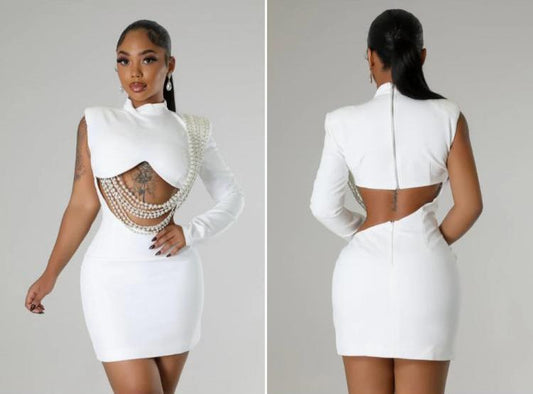 Faux Pearl Chain One Shoulder Mini Dress