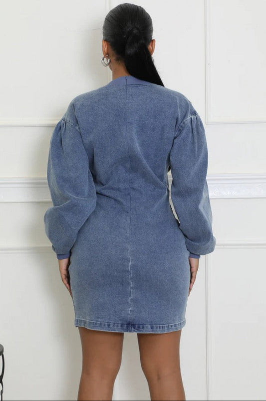 Denim Patchwork Pullover Long Sleeve Mini Dress