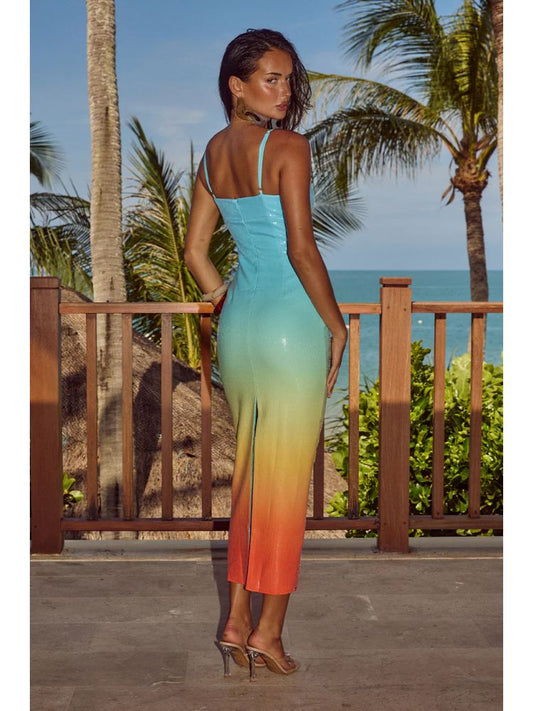 Sequin Floral Split Hem Slip Maxi Dress