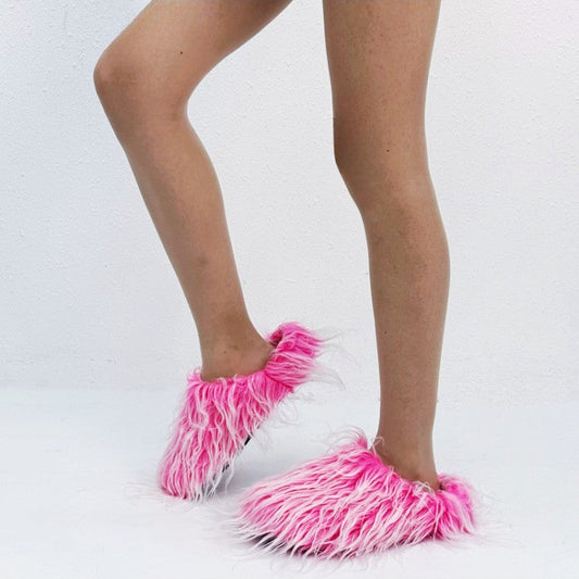 Colorblock Fluff Flat Heel Slippers