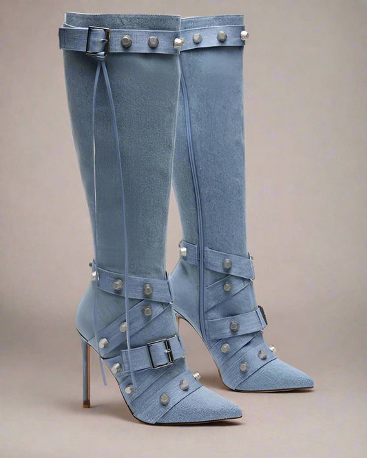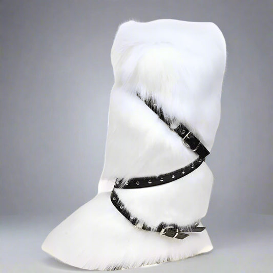 Colorblock Fluff Cross Belt Thigh-High Boots