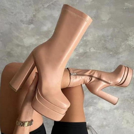 Stylish Hollow-Out Round Toe Boots Pure Color Design