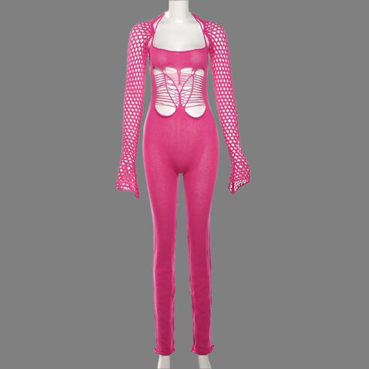 Hollow Out Knitted Lace Up Halter Jumpsuits