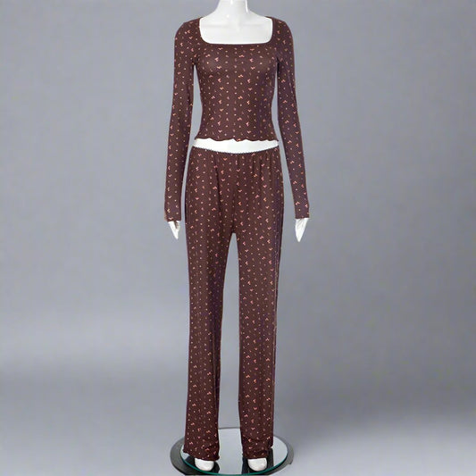 Jacquard Weave Spaghetti Straps Cropped Pant Sets