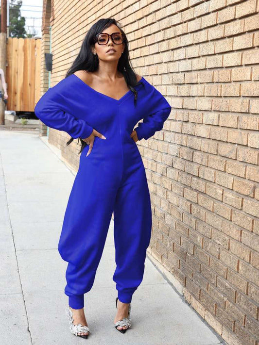 Off Shoulder V Neck Flare Leg Jumpsuits
