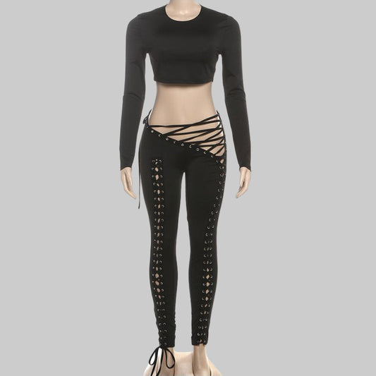Bodycon Cropped Irregular Tie-wrap Pant Sets