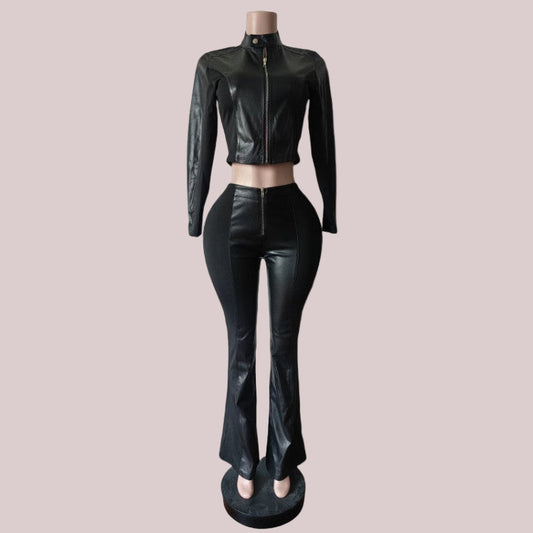 PU Seam Line Zipper Jacket Pant Sets