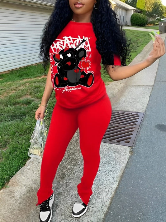 Cartoon Bear Printed Casual Pant Sets