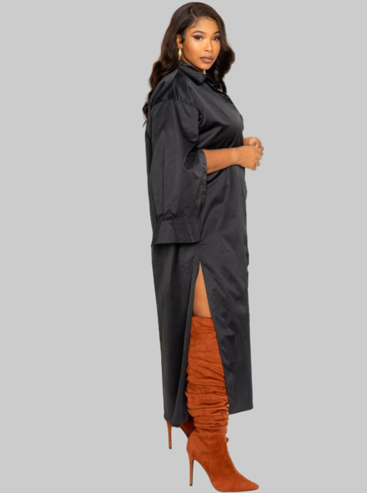 Plus A Line Button Loose Fit Pockets Solid Dress