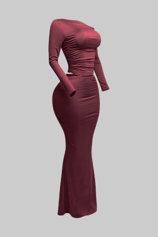 Plus Size One Side Off Shoulder Top & Skirt Set