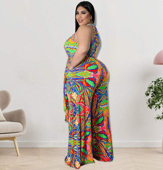 Printed Sleeveless Plus Size Jumpsuits For Women