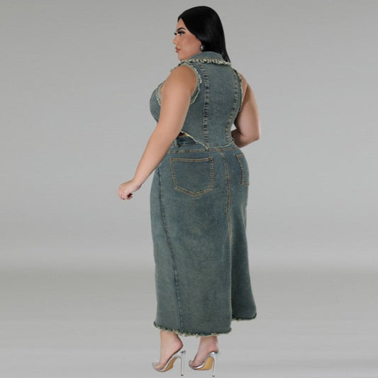 Solid Color Denim High Rise Plus Skirt Sets