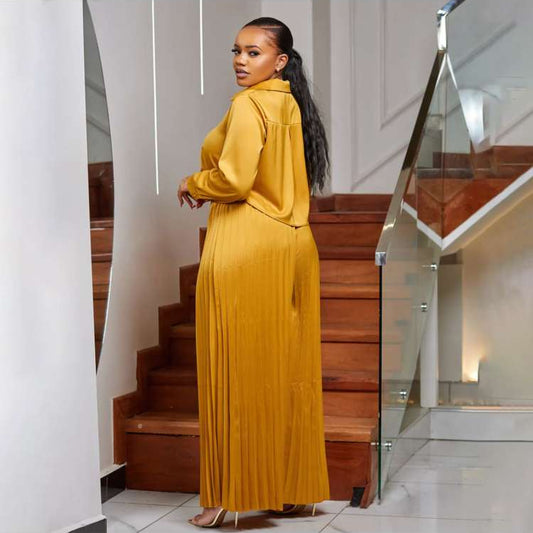 Pleated Wide Leg Long Sleeve Pant Sets