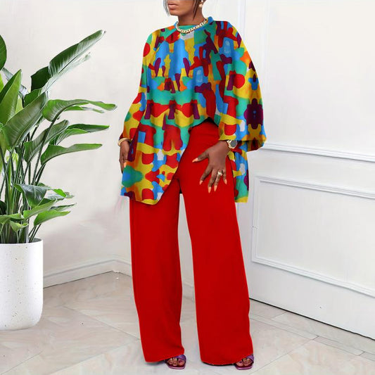 Print Lantern Sleeve Loose Pant Sets
