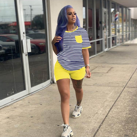Color Matching Striped Loose Short Sets