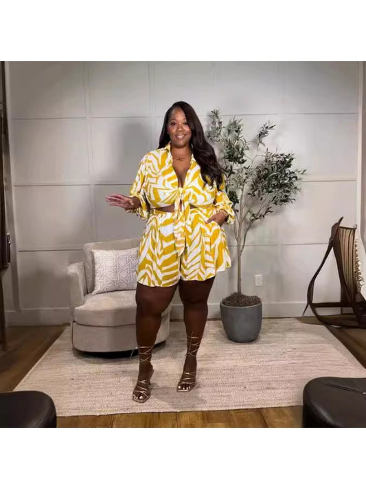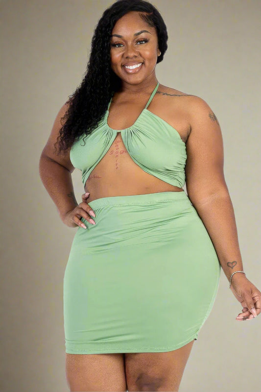 Plus Size Sexy Solid Crisscross Halter Top & Ruched Mini Skirt Set