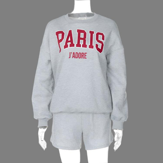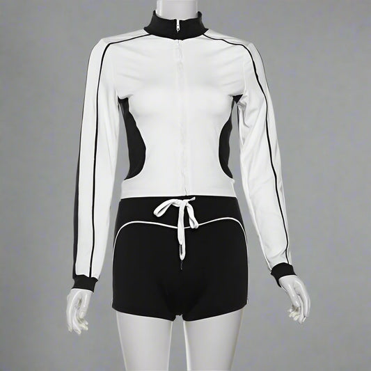 Lapel Zipper Sweatshirt Fitted Short Sets