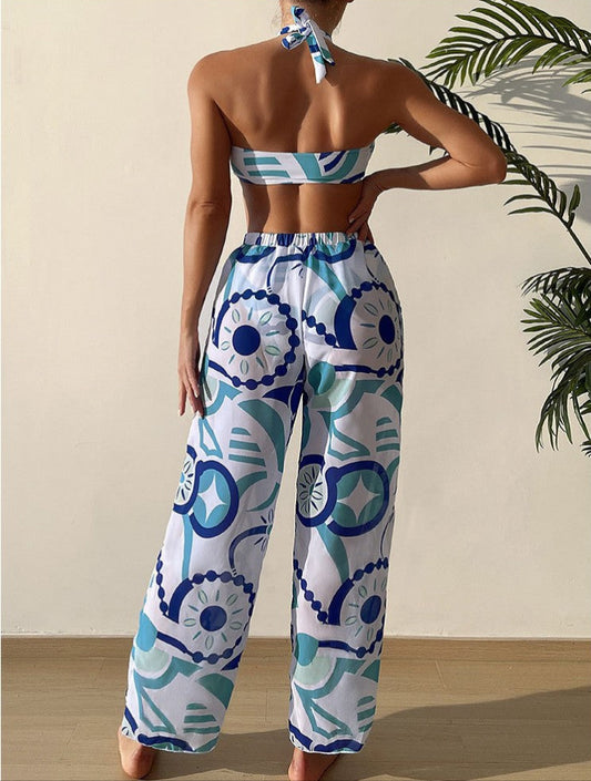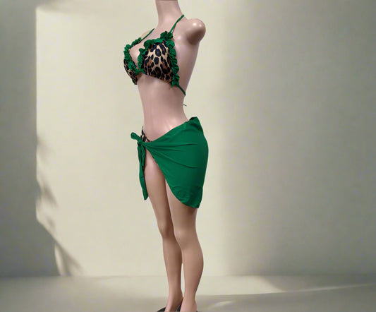 Printed Lace-Up Bikinis Skirt 3 Piece Sets