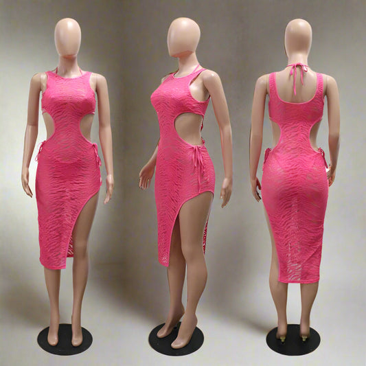 Sheer Zebra Hollow-out Midi Dress Bikinis 3 Piece Sets