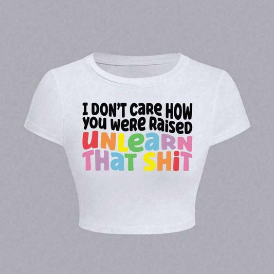 Gradient Letter Print Three-quarter Sleeve T-shirts