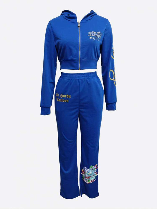 Drawstring Zipper Long Sleeve Pant Sets