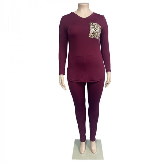 Conjunto de dos piezas de manga larga con estampado de leopardo de otoño