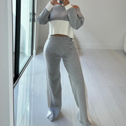 Knitted Colorblock Striped Cropped Skirt Sets