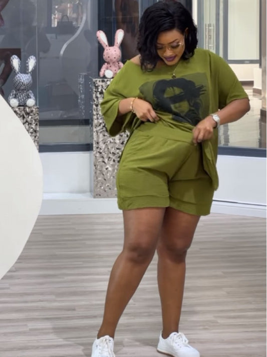 Conjuntos cortos holgados con hombros inclinados y estampados