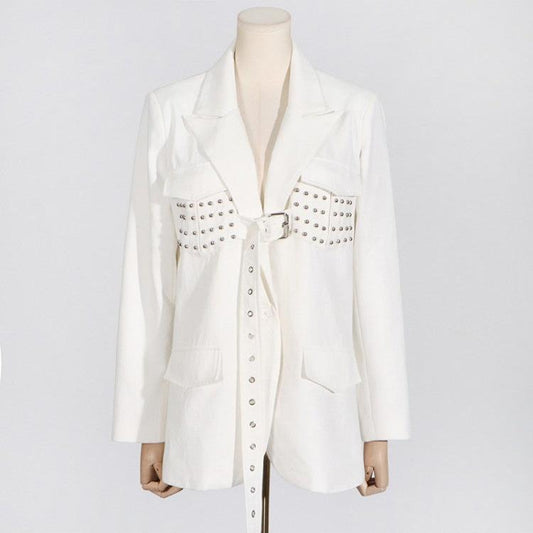 Conjuntos de falda y blazer con cordones y remaches de patchwork