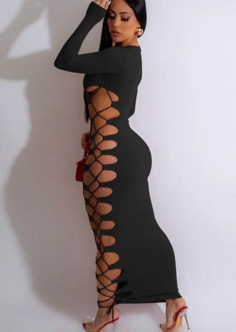 Vestido largo ajustado de talle medio con diseño de patchwork
