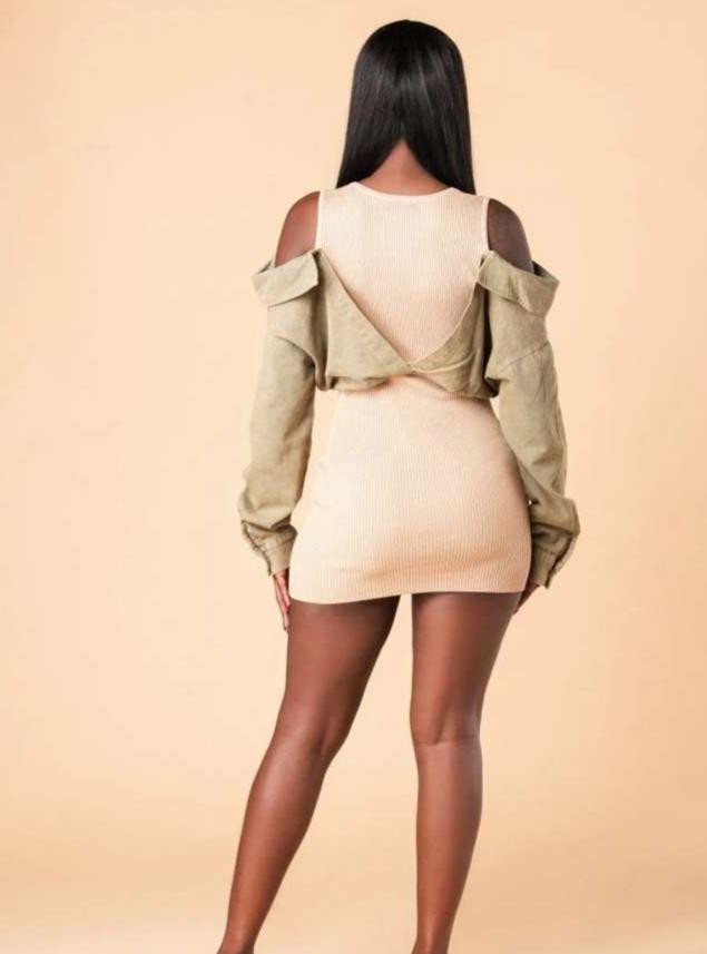 Denim Patchwork Pullover Long Sleeve Mini Dress