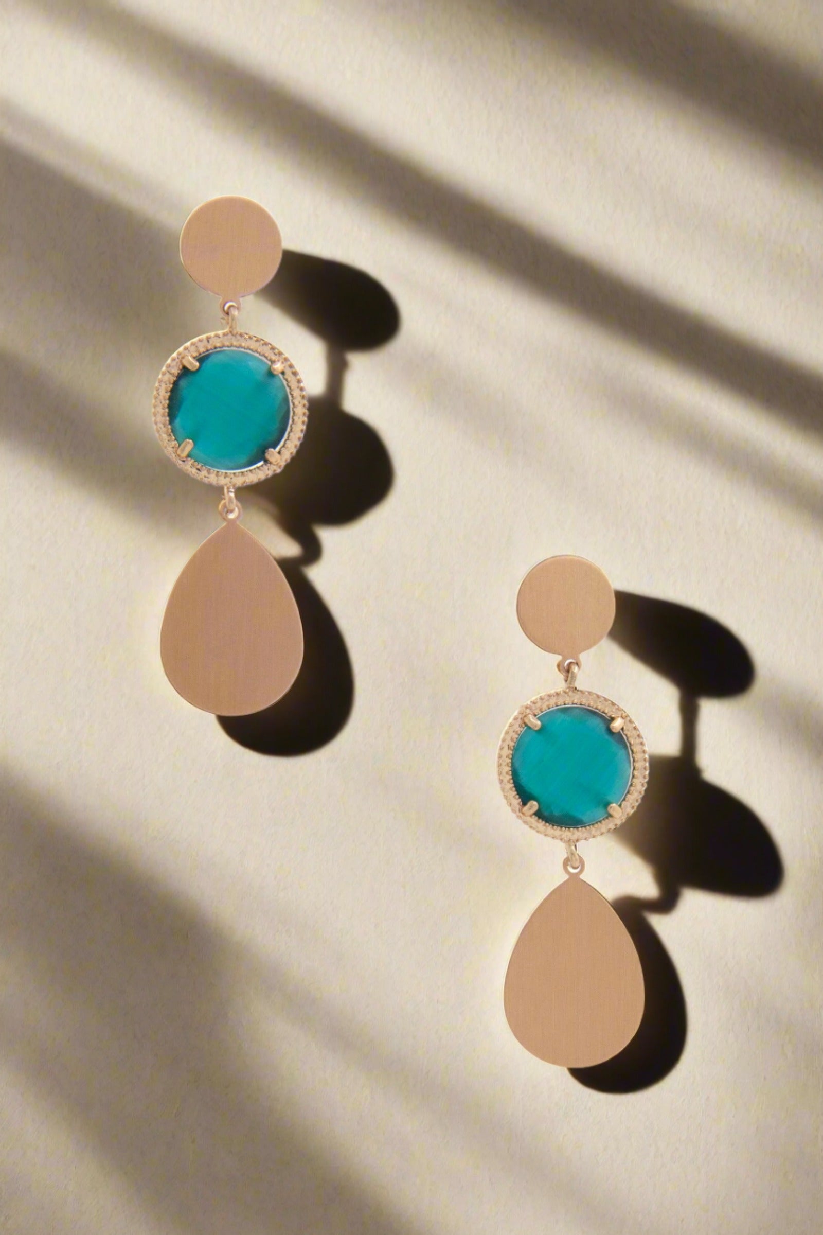 Realza tu colección de joyas con nuestros "pendientes colgantes con forma de lágrima y gemas redondas" disponibles en impresionantes colores verde, azul marino y marrón. Estos pendientes están diseñados meticulosamente para agregar un toque de elegancia y sofisticación a tu look, lo que los convierte en el accesorio perfecto para diversas ocasiones.