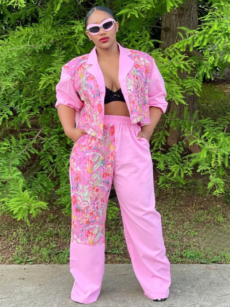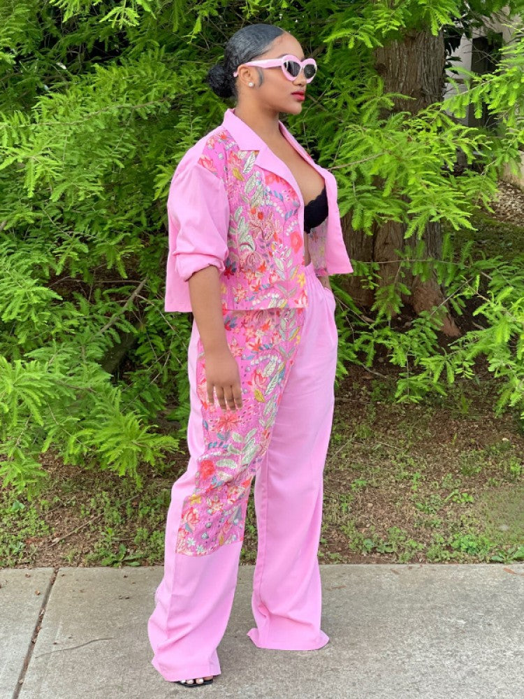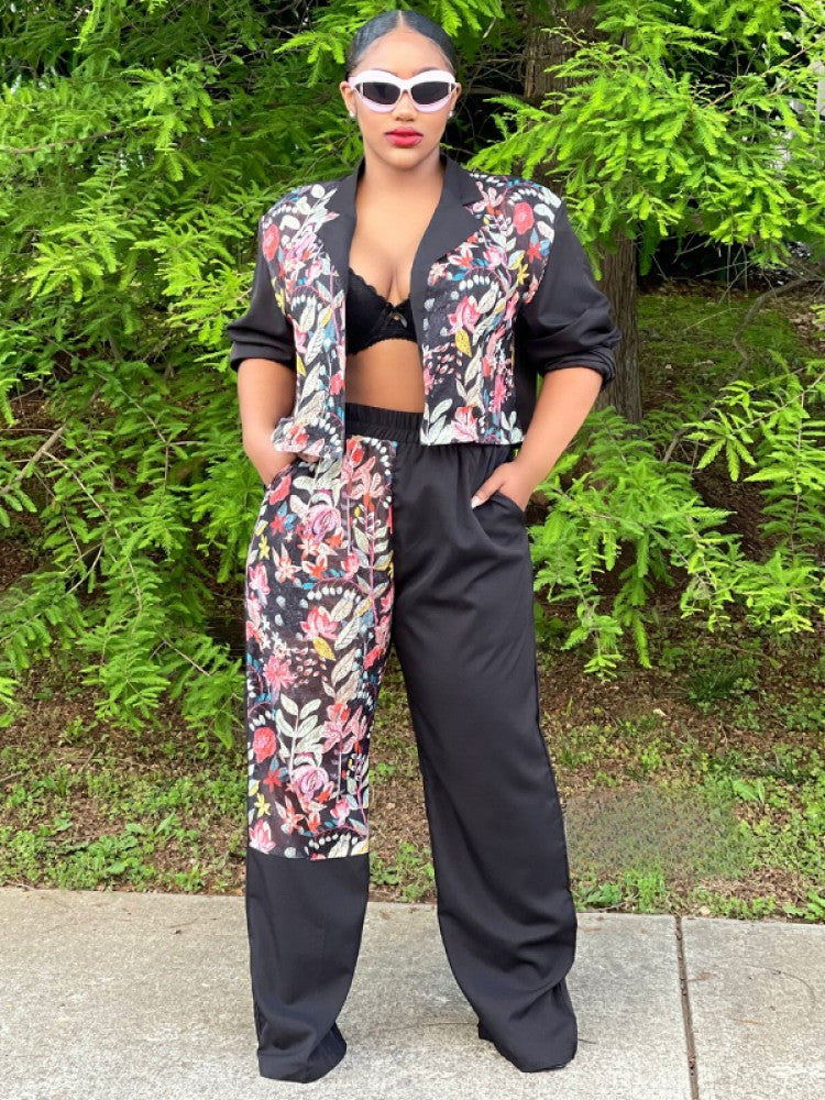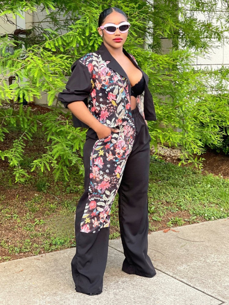 Conjuntos de pantalón y abrigo corto con solapa de flores