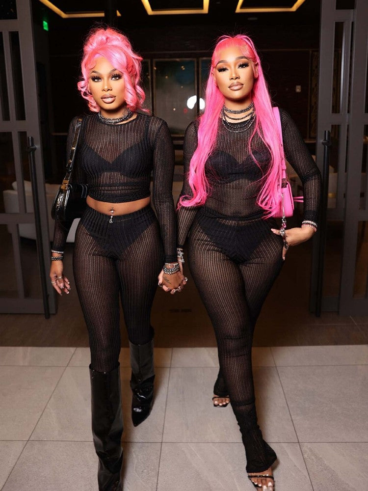 Hollow Out Crop Top Bodycon Pants Sets
