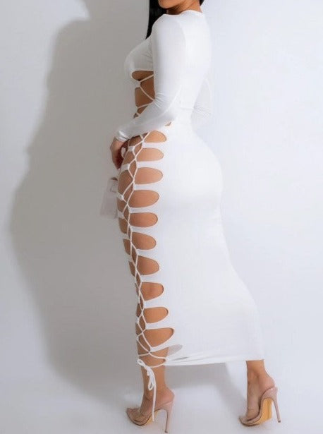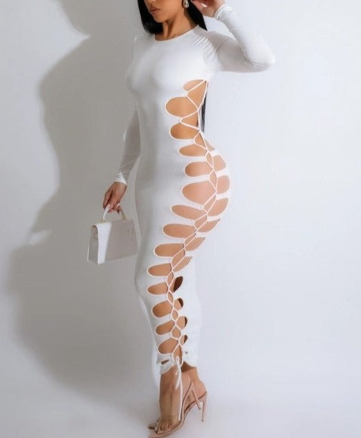Vestido largo ajustado de talle medio con diseño de patchwork