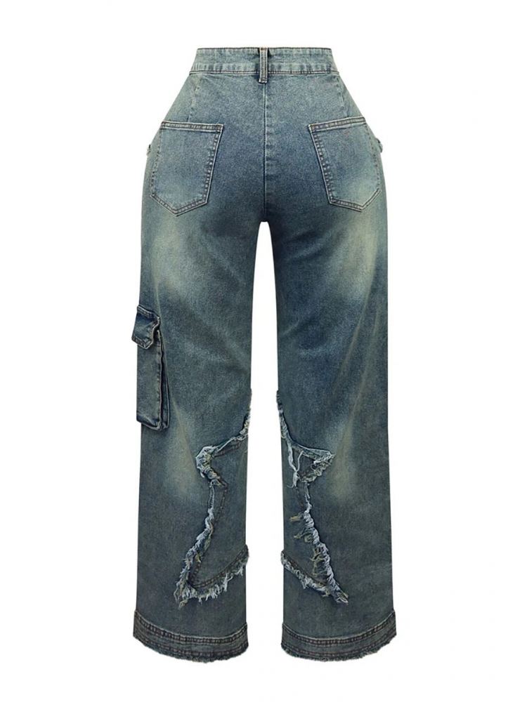 Vaqueros con dobladillo deshilachado y diseño de estrellas y patchwork