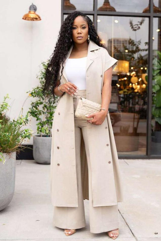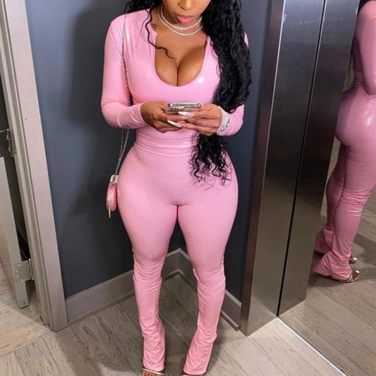 Leopard Fur Hem Split Long Sleeve 2pcs Dress Sets