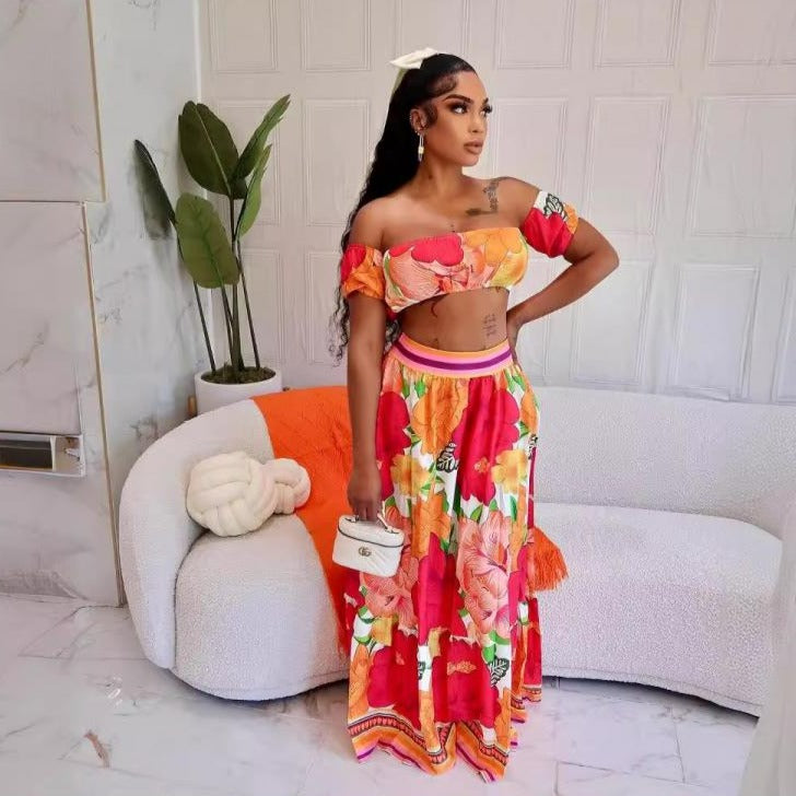 Boat Neck Off Shoulder Cropped Skirt Sets