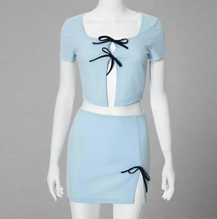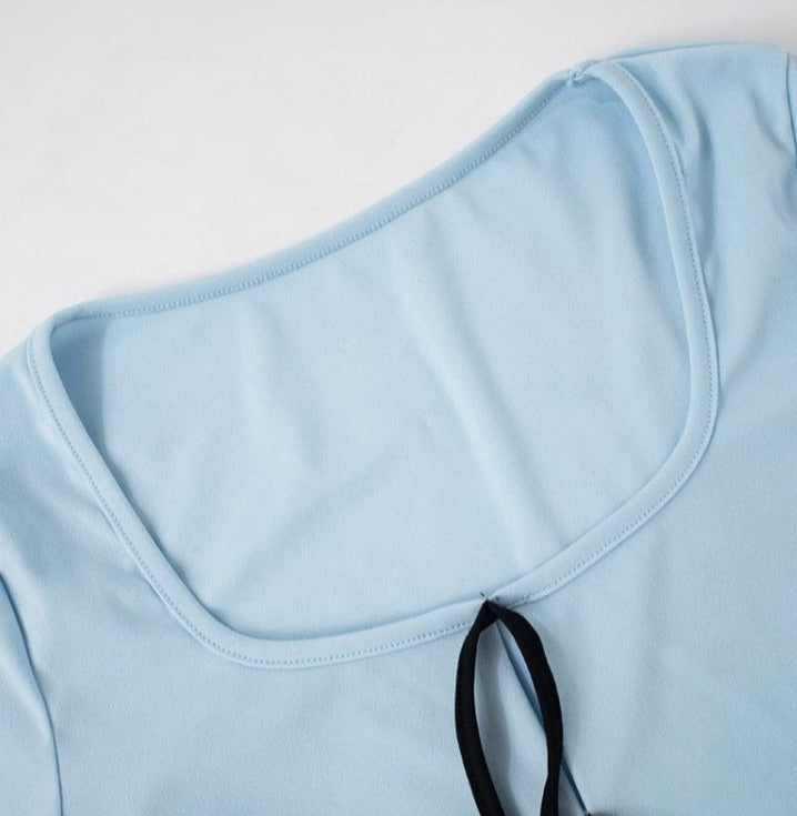 - Elements:: Bow,Hollow Out,Lace Up,Patchwork,Pure Color,Split Hem,Tie-wrap,Solid Color,Plain Color