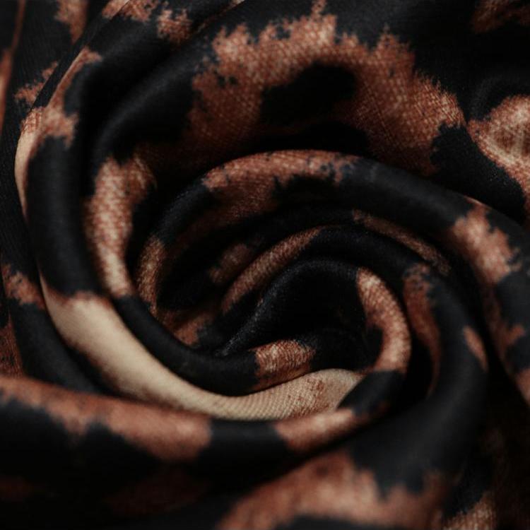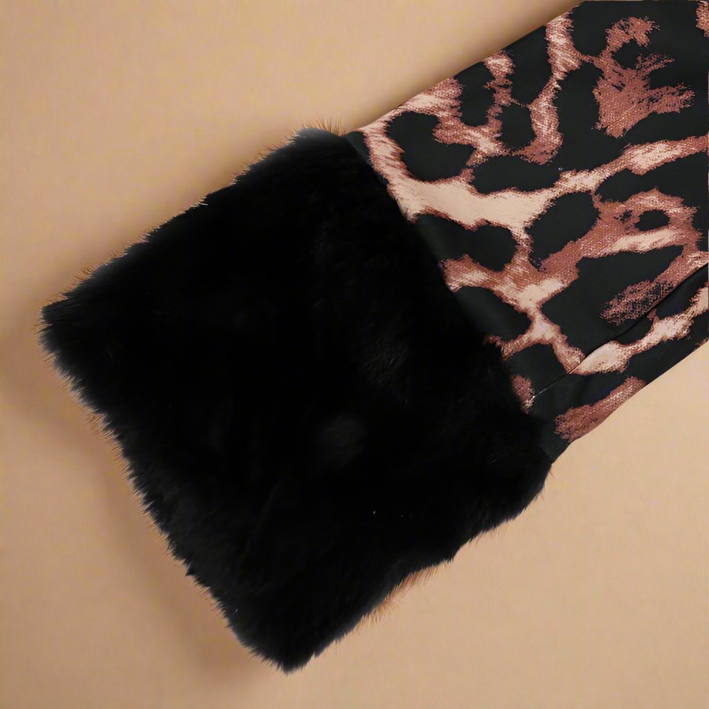 Leopard Fur Hem Split Long Sleeve 2pcs Dress Sets